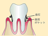 歯垢や歯石が溜まるとここを住みかとして歯と歯肉の境目、歯と歯の間、歯のくぼみなどに細菌が繁殖し、この細菌が歯周病を引き起こします。